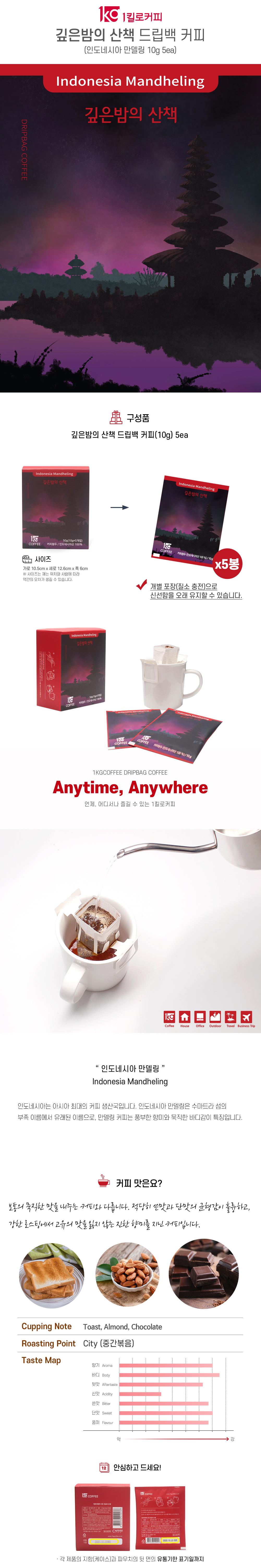 | 용량(중량), 수량, 크기 | 10g 드립백 5입 | 표시광고 사전심의필 | 해당없음 |